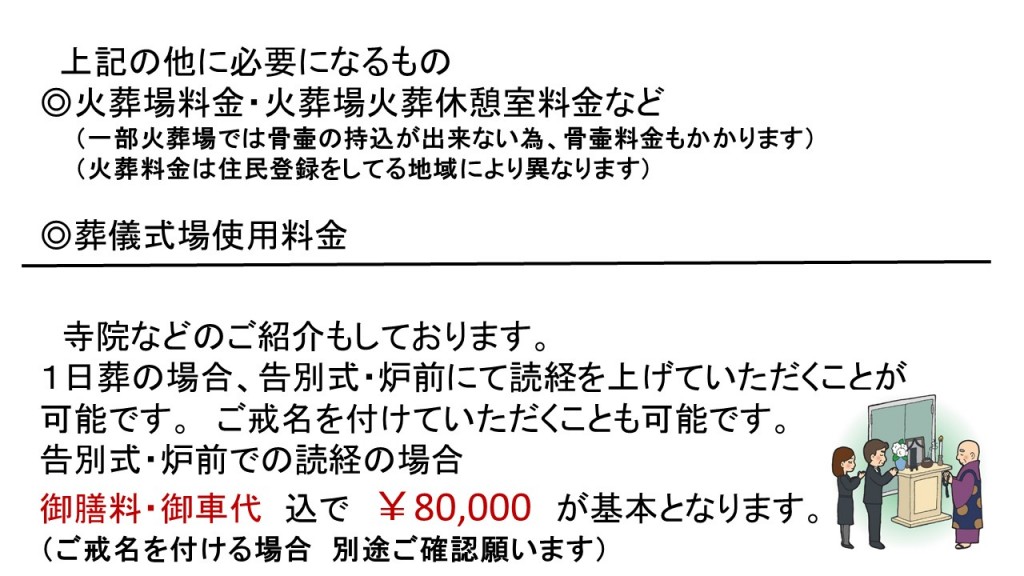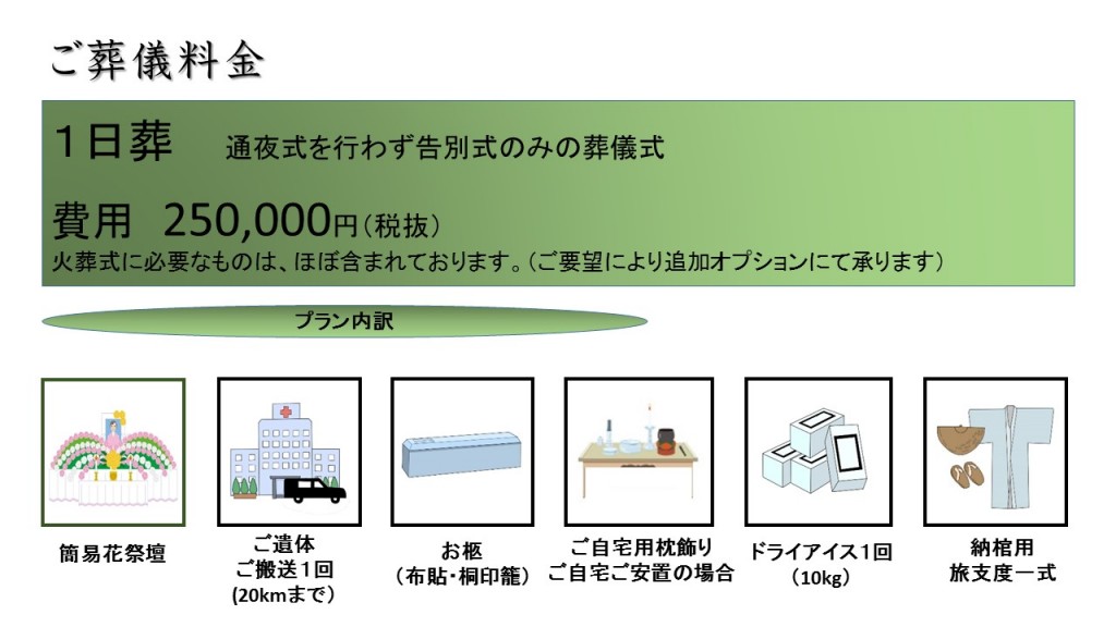 1日葬は基本的にご家族・ご親族が参列して行う葬儀で通夜式を行わず告別式のみで行う葬儀です。